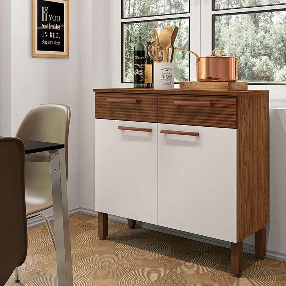 Balcão De Cozinha Ambiente Nala Nogueira Off White Ripado - Kits Paraná