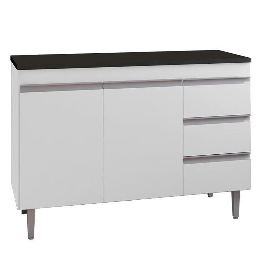 Balcão De Cozinha Andréia Branco Com Tampo 100 Cm Preto Fosco - Ajl