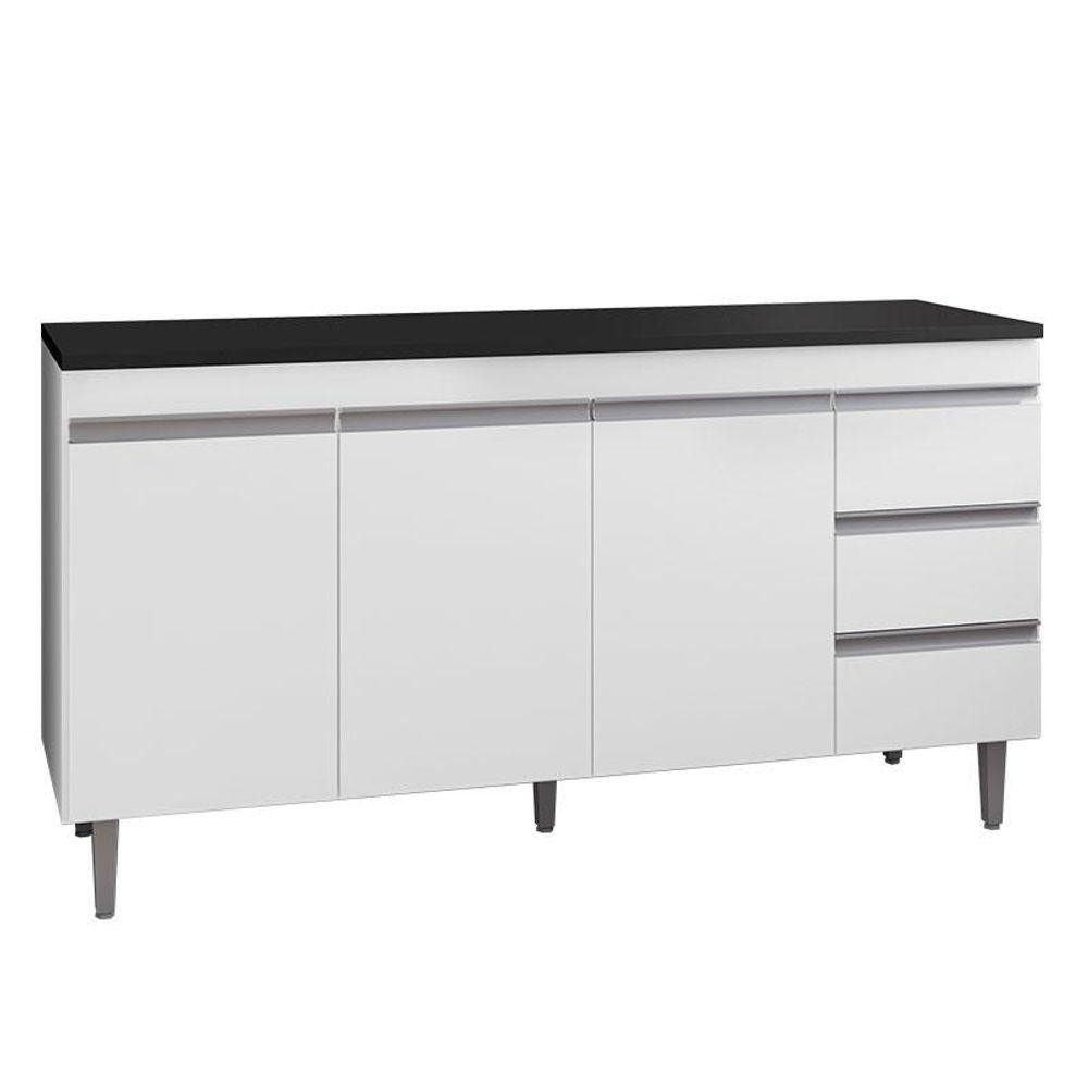Balcão De Cozinha Andréia Branco Com Tampo 160 Cm Preto Fosco - Ajl
