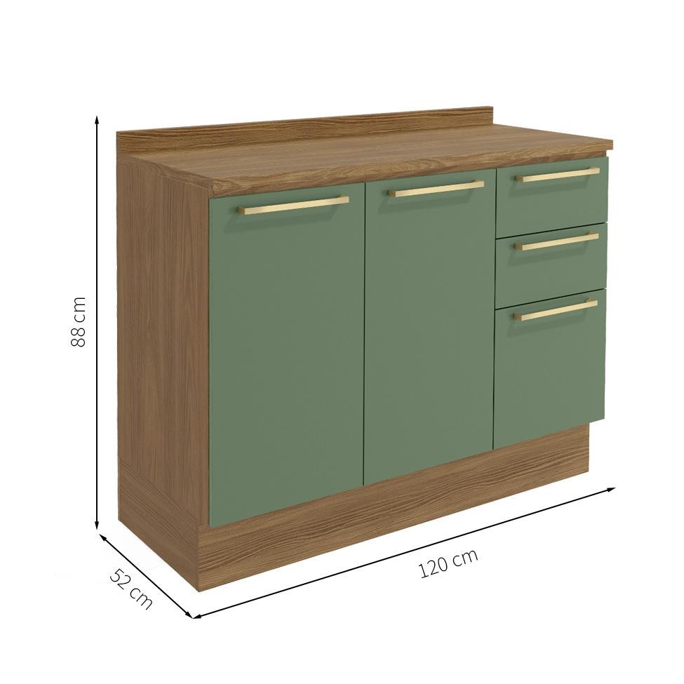 Balcão de Cozinha com Tampo Botanic 2 PT 3 GV Verde Oliva e Nogueira