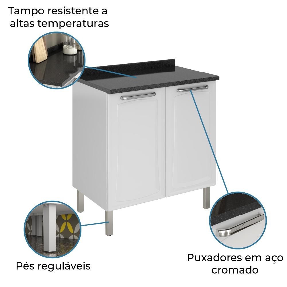 Balcão de Cozinha de Aço Itatiaia Tarsila com Tampo 2 portas 0,80m Branco