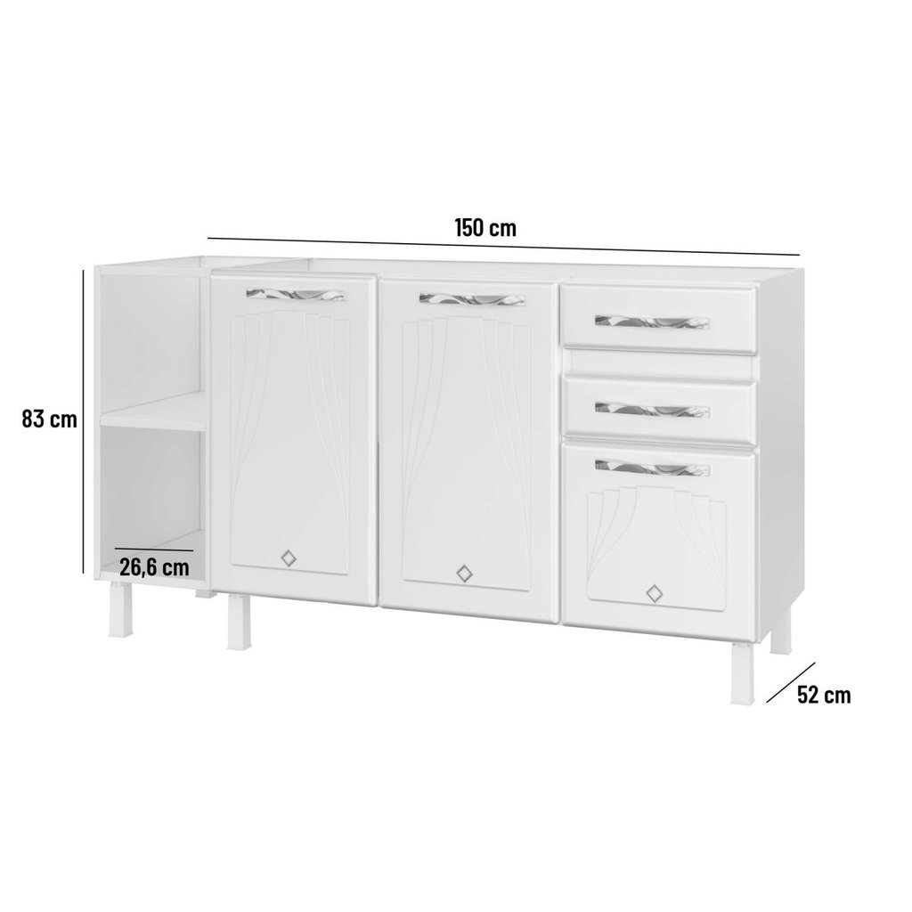 Balcão de Cozinha de Aço Star New 150cm para Pia Branco