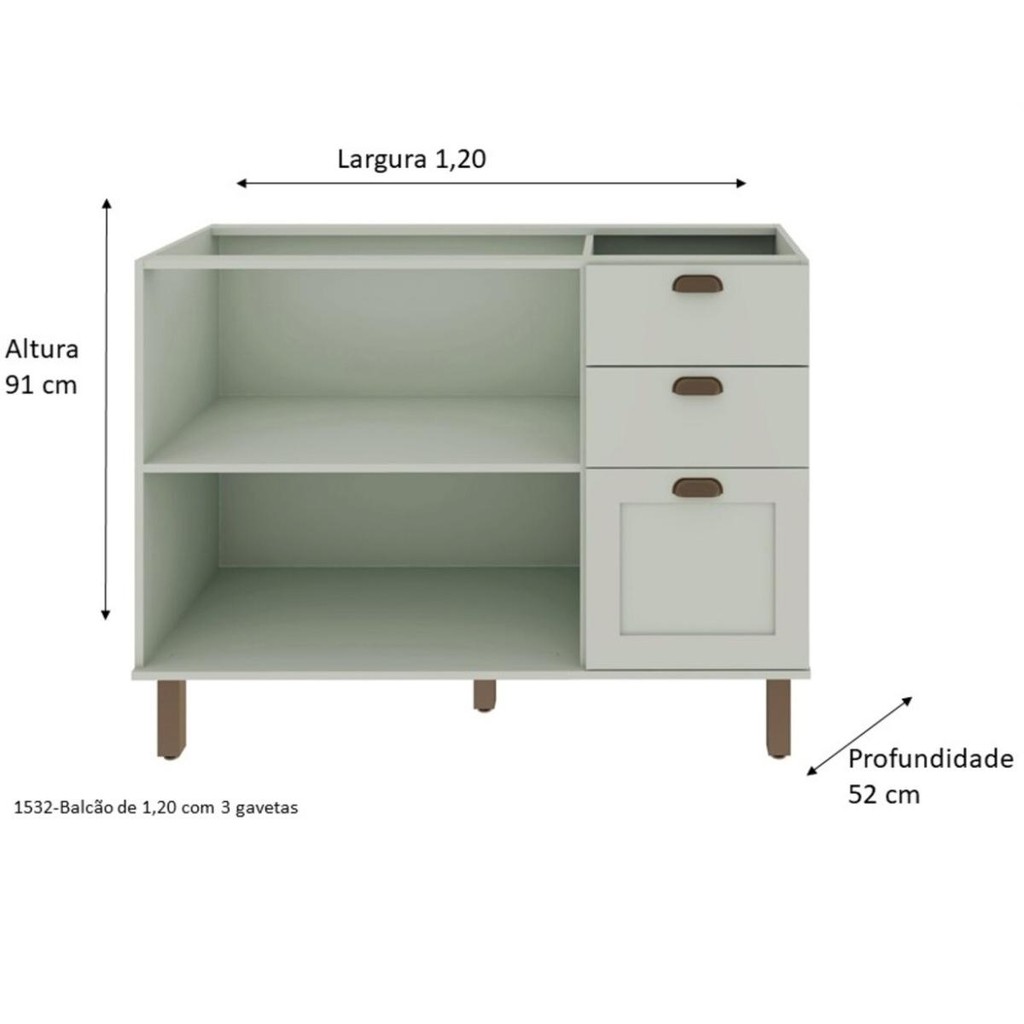 Balcão de Cozinha Genialflex Iluminata Sem Tampo Hortelã