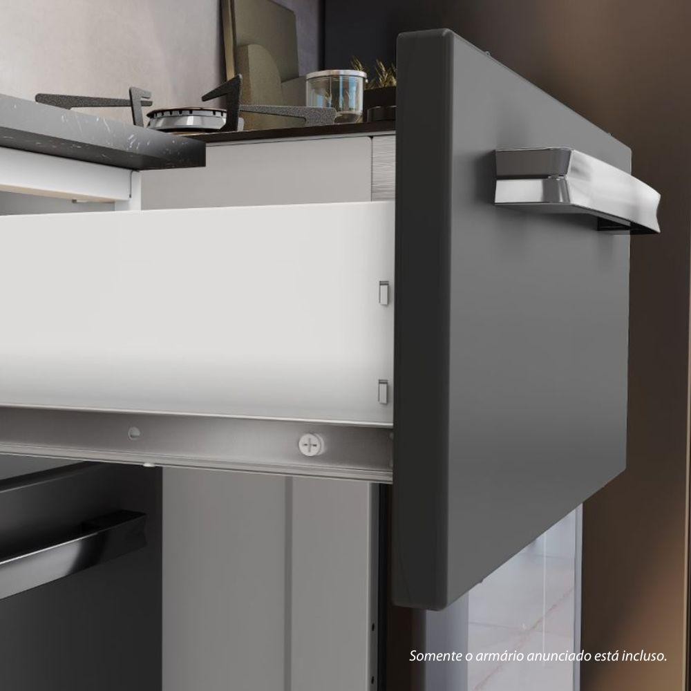 Balcão de Cozinha Itatiaia Aço 3 Portas 2 Gavetas Com Tampo Florença Grafite/Branco