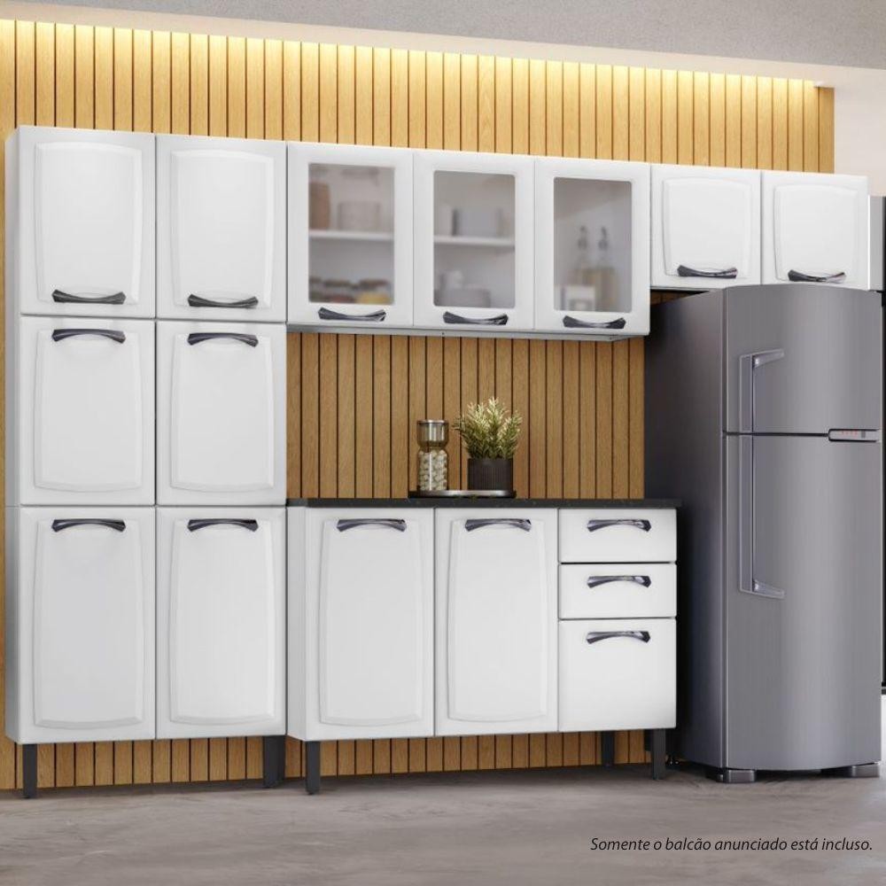 Balcão de Cozinha Itatiaia Aço 3 Portas 2 Gavetas Com Tampo New Premium Branco Neve