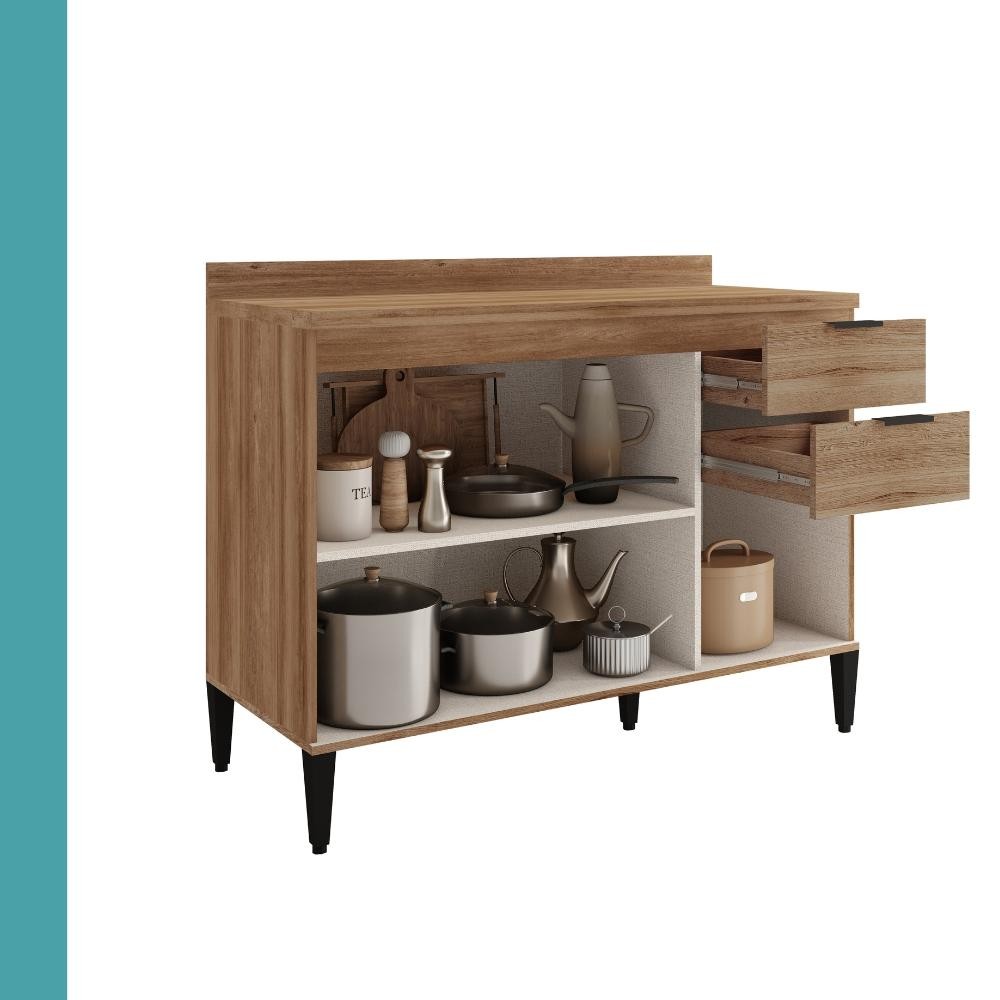 Balcão de Cozinha Miami 1200mm 2 Portas 3 Gavetas Com Tampo Carraro Freijó
