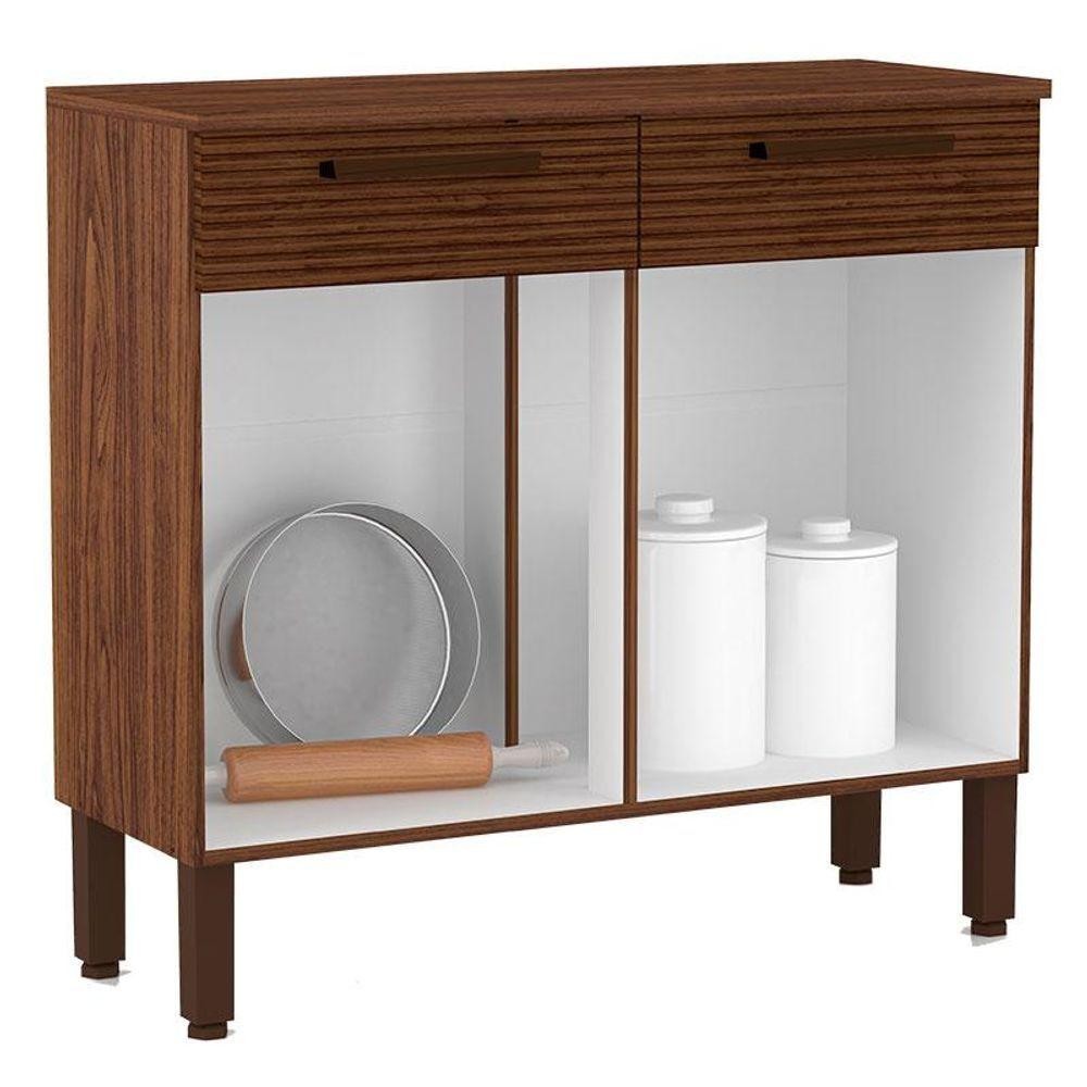 Balcão De Cozinha Nala Nogueira Off White Ripado - Kits Paraná