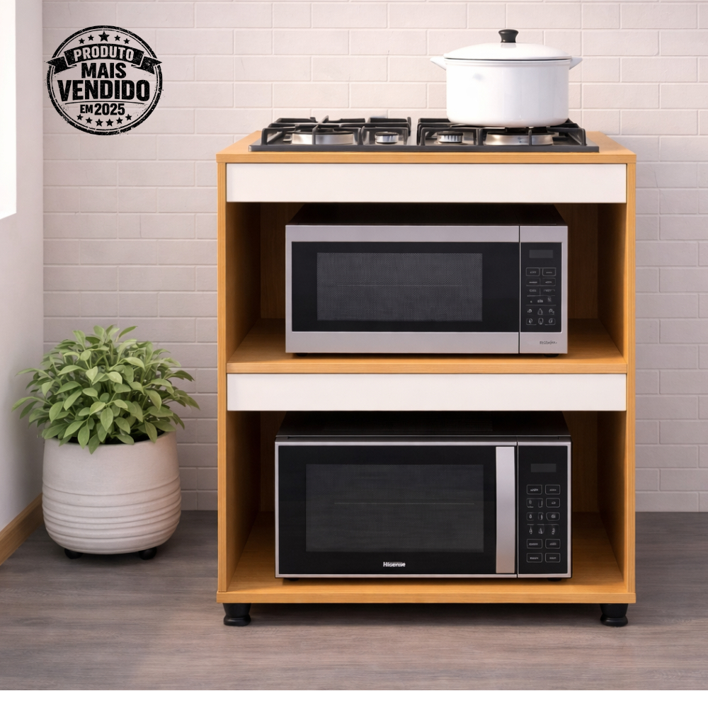 O Balcão Cooktop Adriana foi desenvolvido para oferecer funcionalidade e organização à sua cozinha, com design moderno na combinação. Produzido em MDP, proporciona resistência e durabilidade para o uso diário. Conta com 2 nichos amplos, ideais para acomodar forno elétrico, micro-ondas, utensílios ou outros eletrodomésticos, otimizando o espaço de forma prática. Seu tampo superior é indicado para instalação de cooktop, tornando o ambiente mais funcional e organizado. O modelo possui 4 pés de plástico, garantindo estabilidade e melhor apoio ao móvel. DIFERENCIAIS: - Estrutura em MDP resistente - 2 nichos amplos para melhor organização - Ideal para instalação de cooktop - Design moderno - 4 pés de plástico para maior estabilidade - Ideal para cozinhas compactas e funcionais DIMENSÕES: Altura: 90 cm Largura: 75 cm Altura interna de cada nicho: 35 cm Largura interna aproximada: 71 cm FICHA TÉCNICA: Modelo: Adriana Tipo: Balcão para Cooktop Material: MDP Quantidade de Nichos: 2 Pés: 4 pés de plástico Indicação: Instalação de cooktop e apoio para eletrodomésticos Tampo NÃO vai cortado, devendo o cliente cortá-lo de acordo com a medida do seu cooktop. Tampo vai apenas com as medidas para recorte
