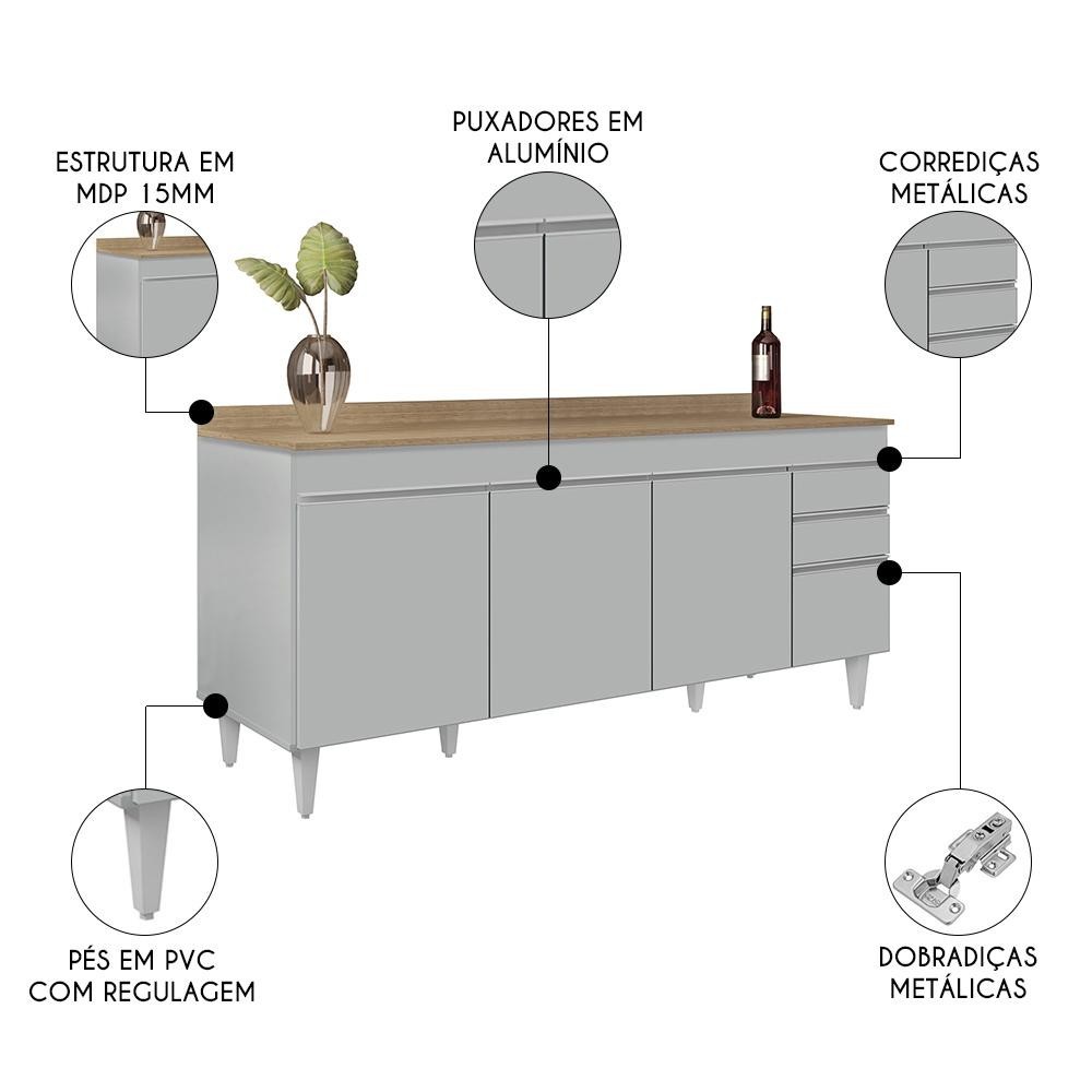Balcão de Cozinha Para Pia 180cm com Tampo 4 Portas Dallas Cinza Claro/Castanho - Lumil