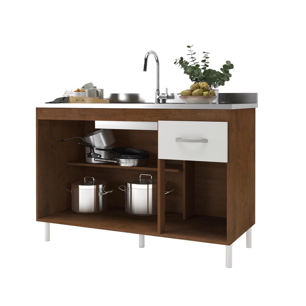 Balcão de Cozinha para Pia de 120cm Sem Tampo Suiça Fidelitá 3 Portas 1 Gaveta Noce/Off-White