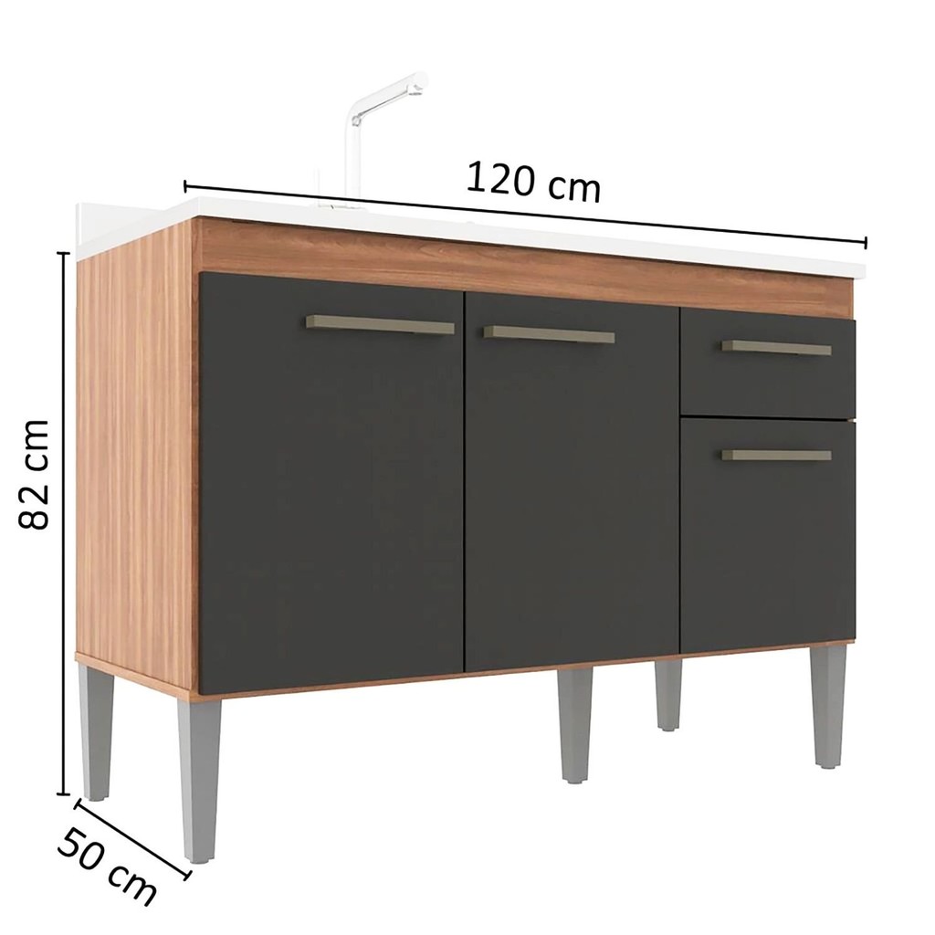 Balcão de Pia 120cm Realeza 3 Portas 1 Gaveta Manchester/Grafite