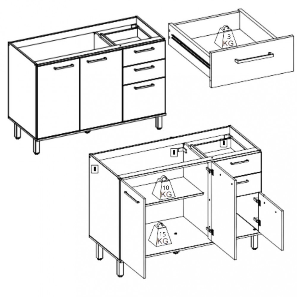 Balcão de Pia 3 Portas 2 Gavetas 120cm Isis Luciane