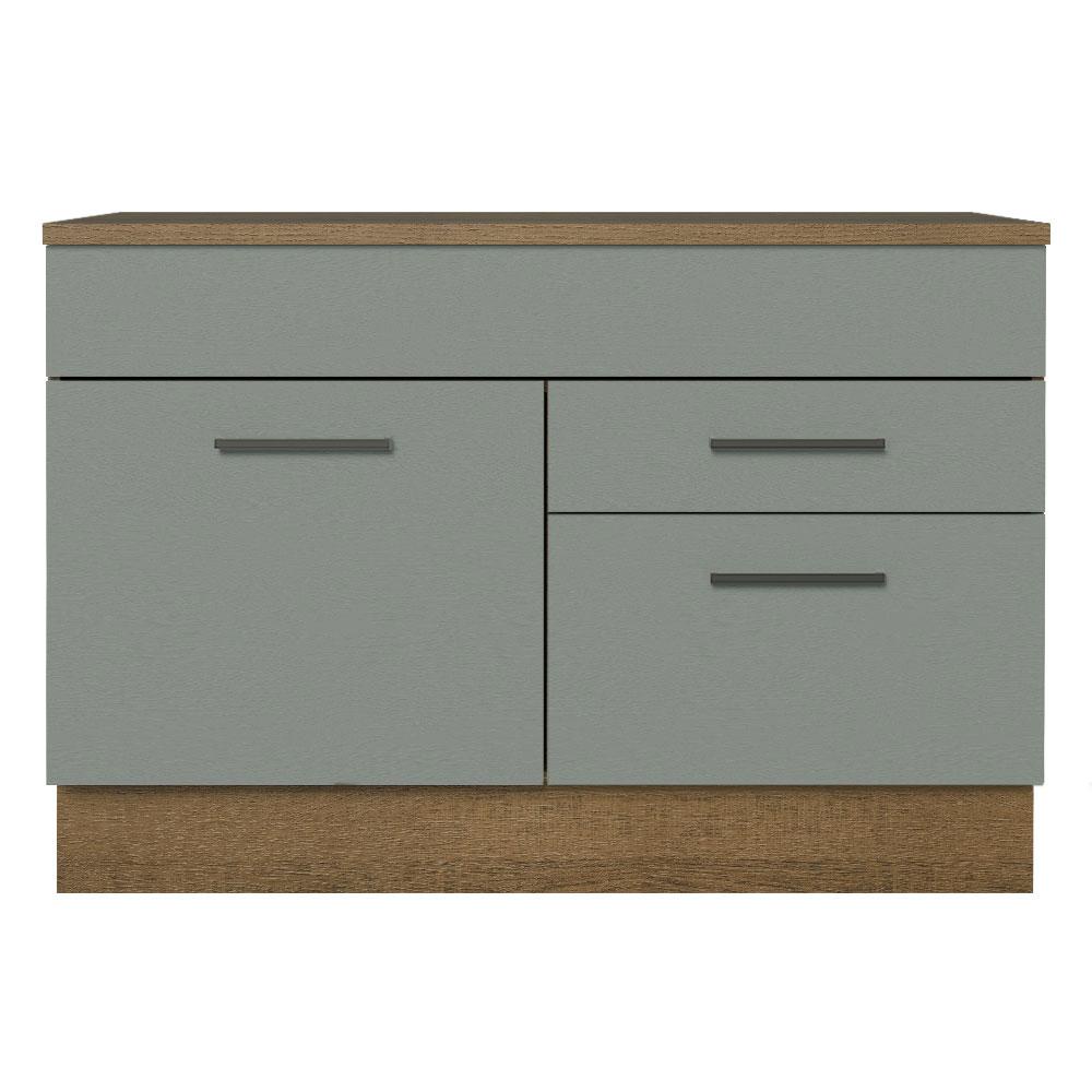 Balcão de Pia Cozinha 1 Porta e 2 Gavetas (Com Tampo) Rustic/Cinza Agata Madesa
