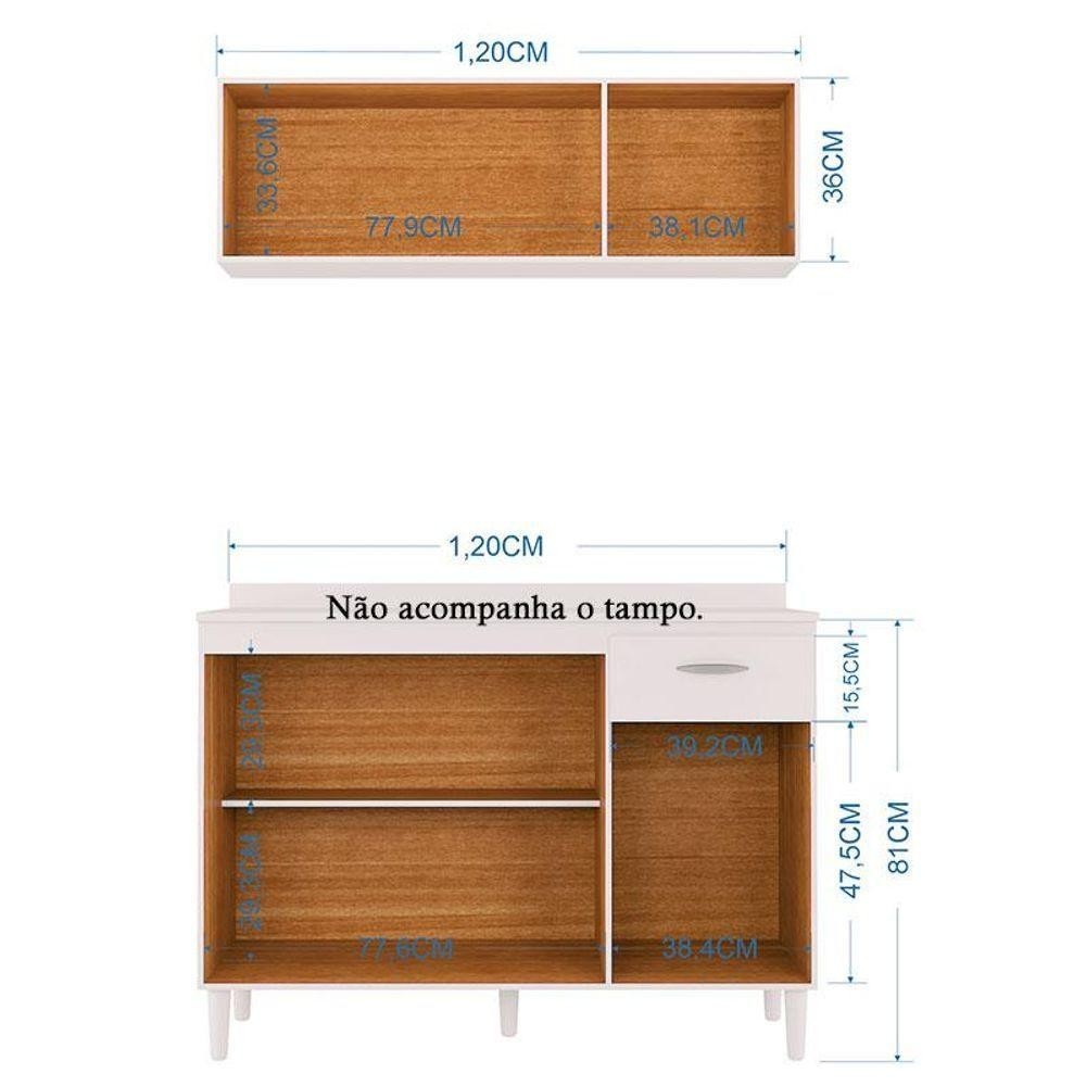 Balcão De Pia E Armário Aéreo 120 Cm Branco Brilho - Poquema Procurando por armários para cozinha, apresentamos a você o Combo desenvolvido pela Poquema, Armário Aereo 3 Portas e Balcão de pia, ideal para ambientes compactos que não possuem muito espaço, lindo design na cor Branco Brilho proporcionando modernidade e um toque especial ao ambiente, possui amplo espaço interno, repartições para melhor organizar seus utensílios, fabricados com materiais de ótimas qualidades. Não deixe de aproveitar, garanta o seu! Armário Aéreo para Cozinha 3 Portas 120 cm Branco Brilho - Poquema Características Técnicas: - Desenvolvido 100% em MDP - Acabamento em pintura U.V na cor Branco Brilho - Possui 03 Portas - Dobradiças metálicas - Puxadores de Plástico Prata Fosco - Amplo espaço interno - Lindo design Dimensões: Altura: 36 cm Largura: 120 cm Profundidade: 26 cm Balcão de Pia 120 cm Branco Brilho - Poquema Características Técnicas: - Desenvolvido 100% em MDP - Acabamento em pintura U.V na cor Branco Brilho - Possui 03 Portas - Dobradiças metálicas - 01 Gaveta - Corrediças metálicas - Puxadores de Plástico Prata Fosco - Kit 05 pés plástico Branco - Amplo espaço interno - Lindo design - Não acompanha tampo Dimensões: Altura: 81 cm Largura: 120 cm Profundidade: 52 cm Obs: Não realizamos a montagem, porém acompanha manual de instruções.