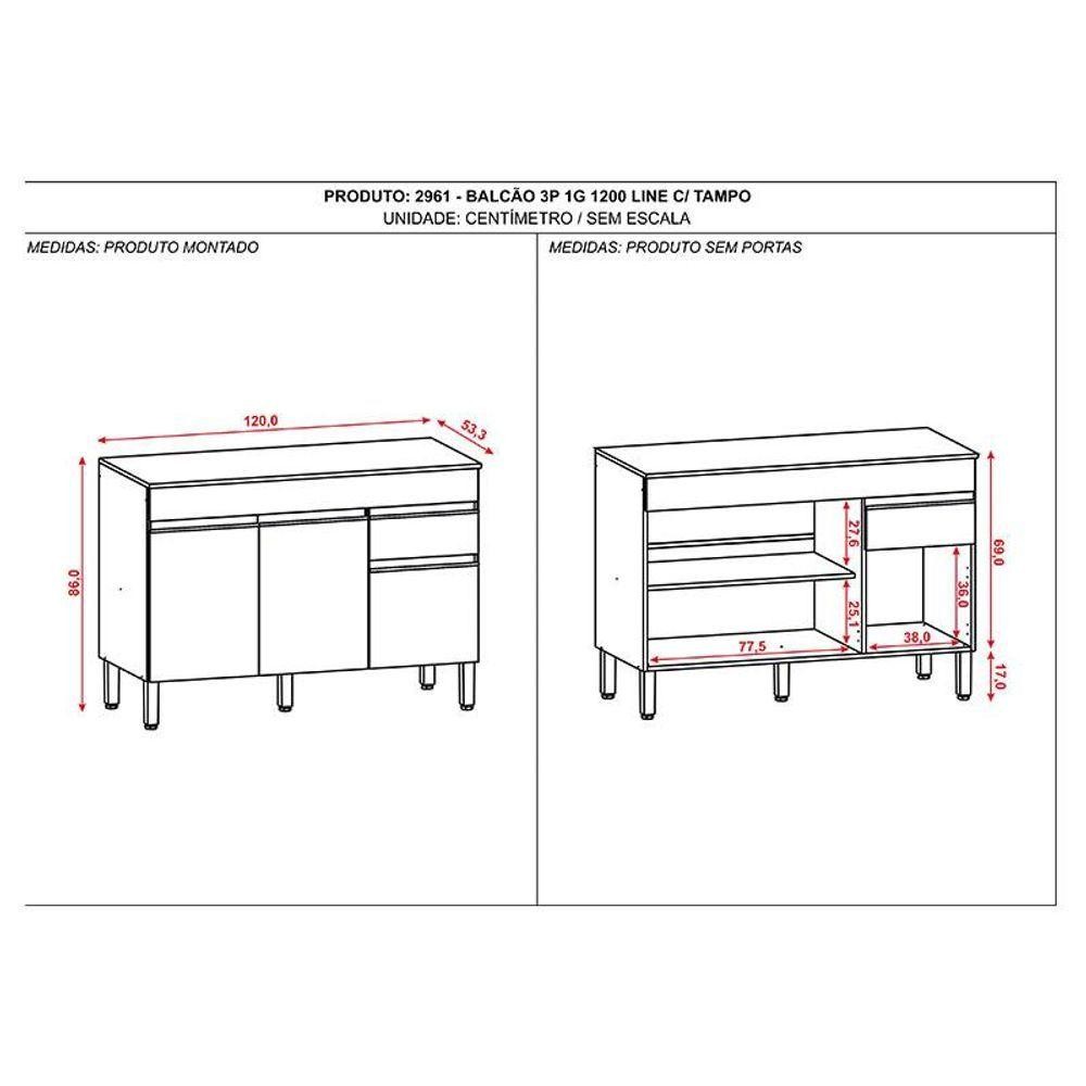 | Balcão De Pia Line 120 Cm Com Tampo Gris - Kits Paraná este produto | R$ 318,50 | — | 5.0/5 | — |