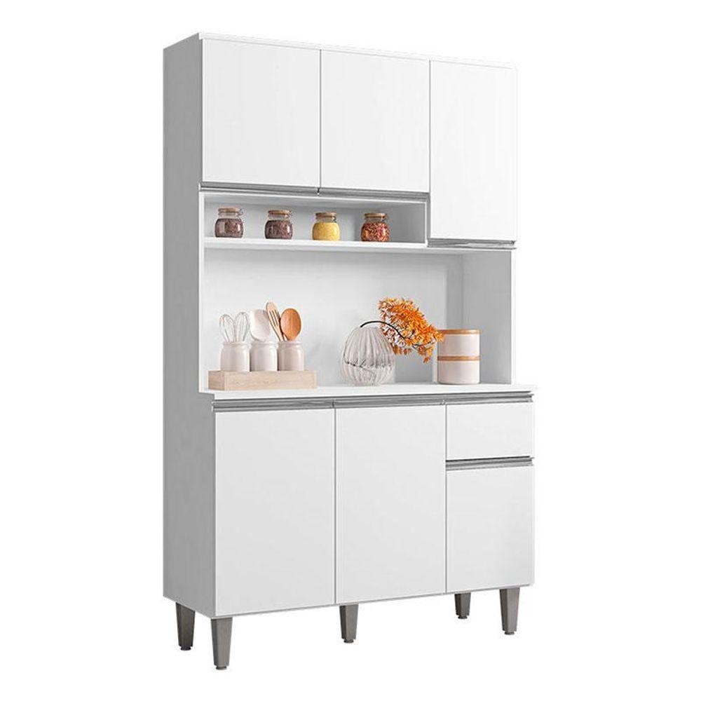 Balcão De Pia Tatiane 120 Cm E Armário Cozinha Kit Márcia Ambiente Branco Brilho - Ajl