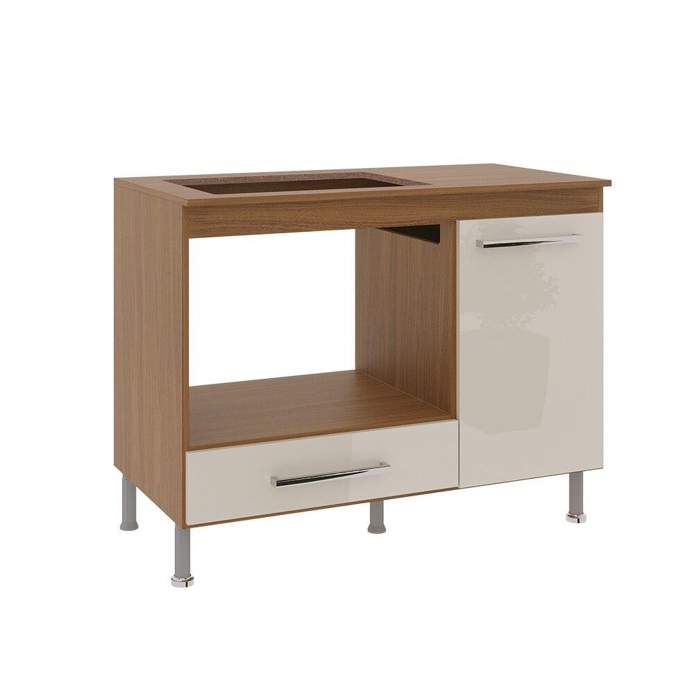Balcão Forno Cooktop Indékes 105cm Freijó Off White 4 Bocas Otimiza Cozinha 1 Porta 1 Gaveta