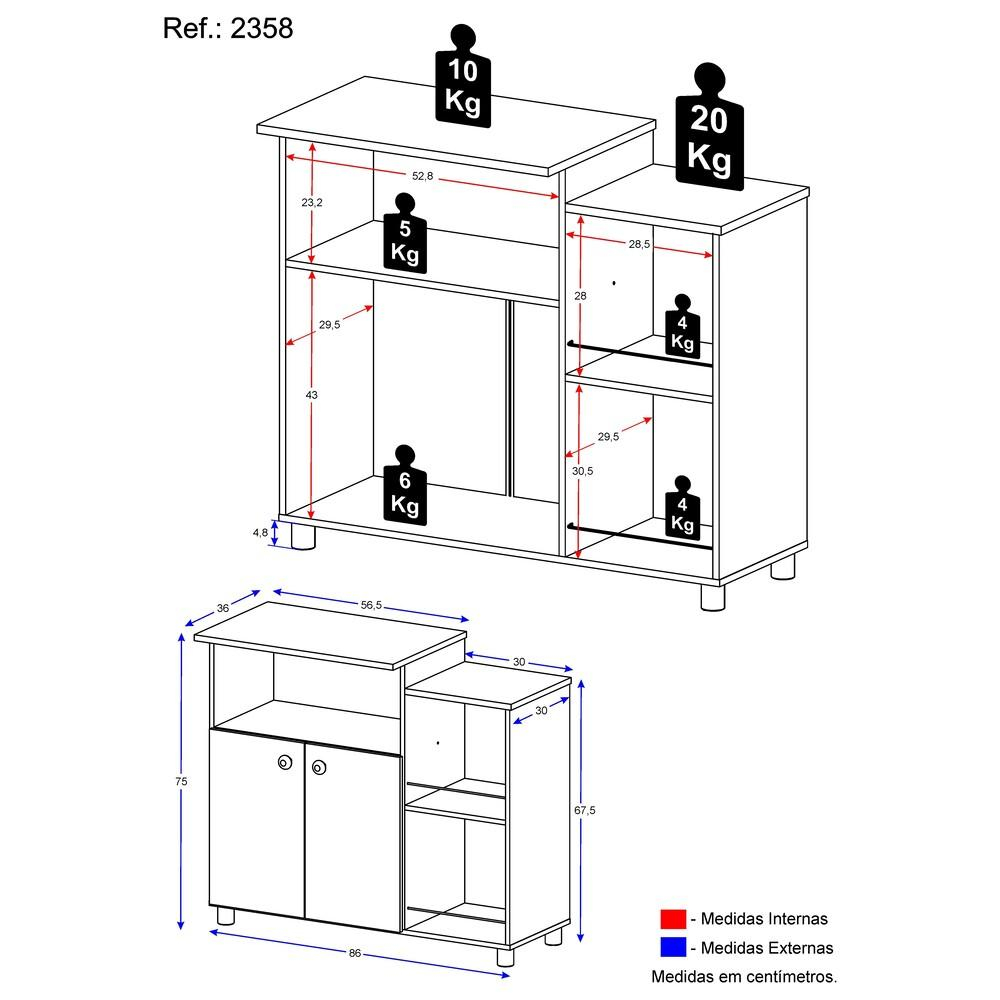 Balcão Fruteira Multiuso Multimóveis para Forno e Microondas Branco REF.2358