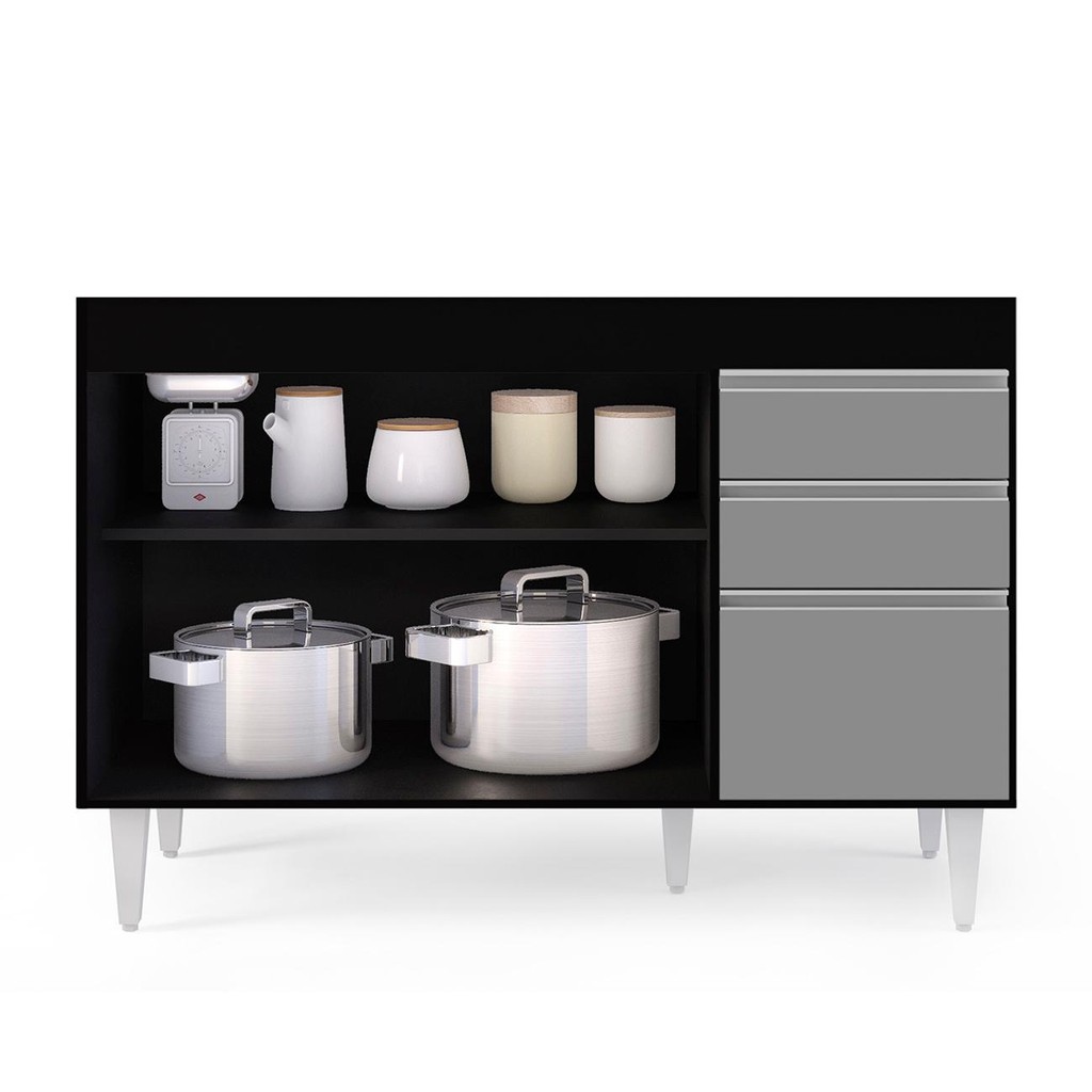 Balcão Gabinete 120cm 3 Portas 2 Gavetas Michigan Preto/Cinza - Lumil