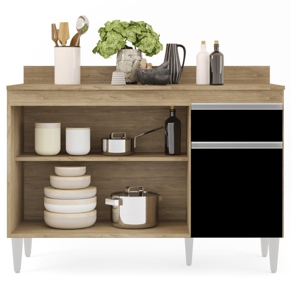 Balcão Gabinete 120cm Com Tampo 3 Portas 1 Gaveta Arizona Castanho/Preto - Lumil Móveis