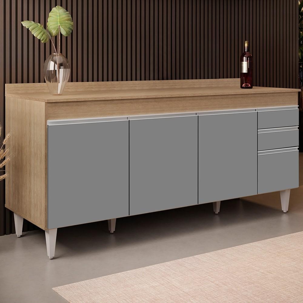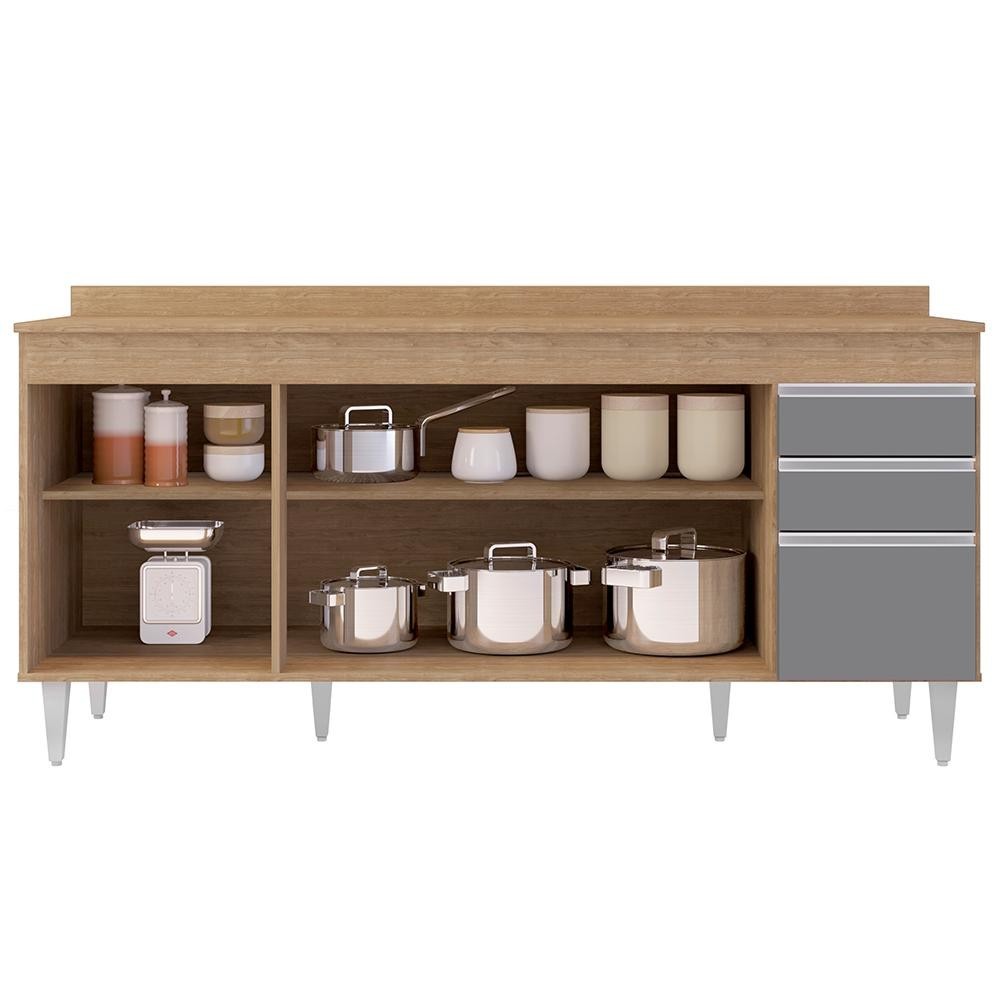 Balcão Gabinete 180cm com Tampo Dallas Castanho/Cinza - Lumil