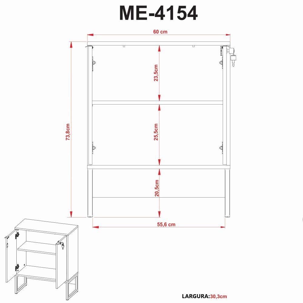 O Balcão Tecnomobili ME4154 possui 2 portas e chave, material em MDP, pé tubular na cor preto e acabamento pintura UV. Surpreendente em suas linhas e sua proposta minimalista a linha entrega não só conforto mas muito estilo, ideal para um office mais clássico ou até mesmo aqueles cheio de personalidade. Especificações - Comprimento: 60 cm - Largura: 30,3 cm - Altura: 73,8 cm - 2 Portas - 1 Prateleira - Com Chave e Tranca - Recomendação de Limpeza: Limpar com pano seco para retirar o pó. Não aplicar produtos abrasivos. - Produtos de Enfeite e Eletrônicos Não Estão Inclusos.