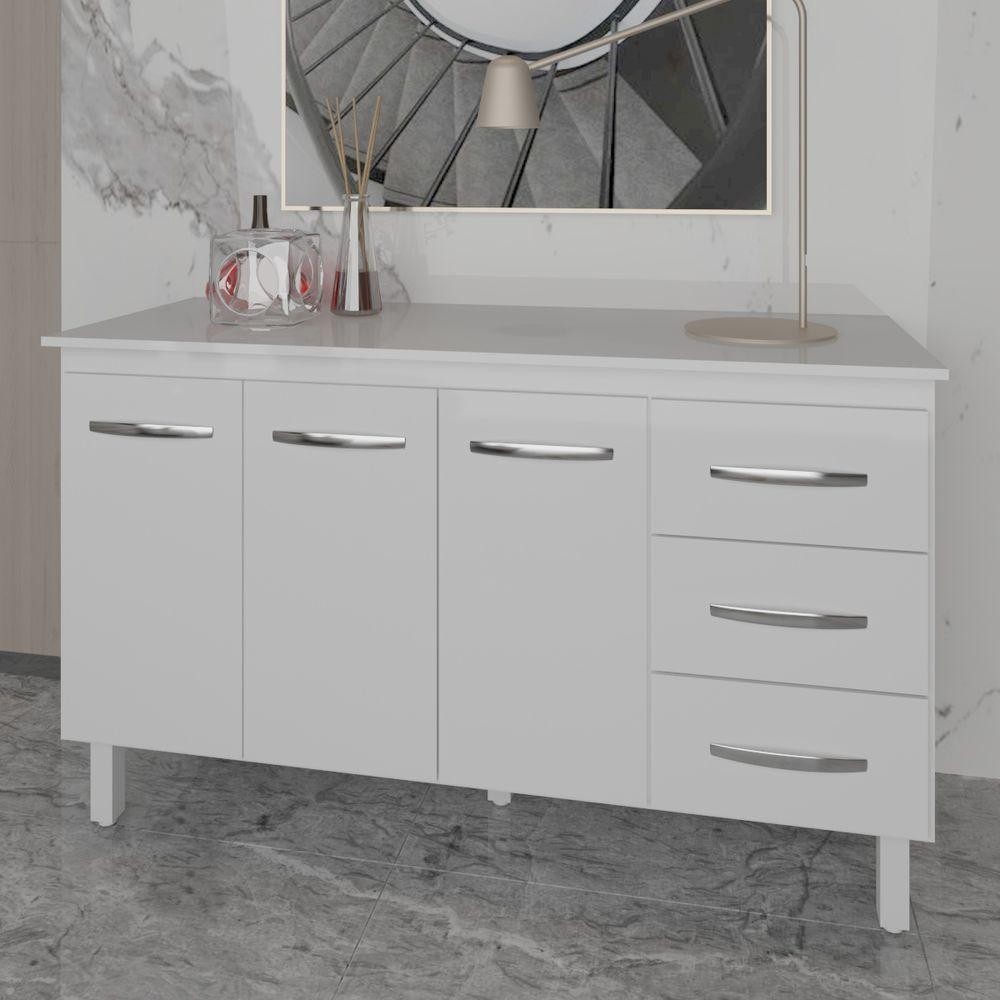 Balcão Gabinete Armário Cozinha Carine Branco Com Tampo Tampão 140 Cm Mobília Decor Branco