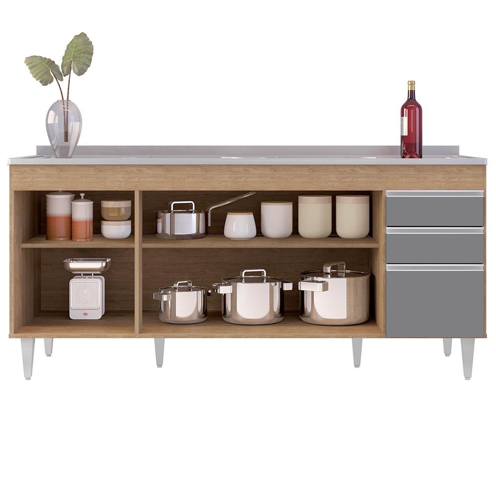 Balcão Gabinete Com Pia 180cm Dallas Castanho/Cinza - Lumil
