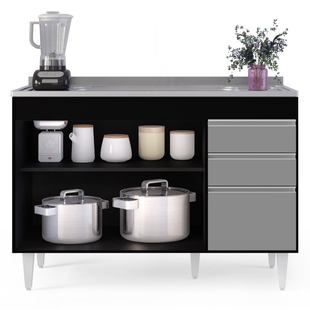 Balcão Gabinete com Pia Inox 120cm Michigan Preto/Cinza - Lumil