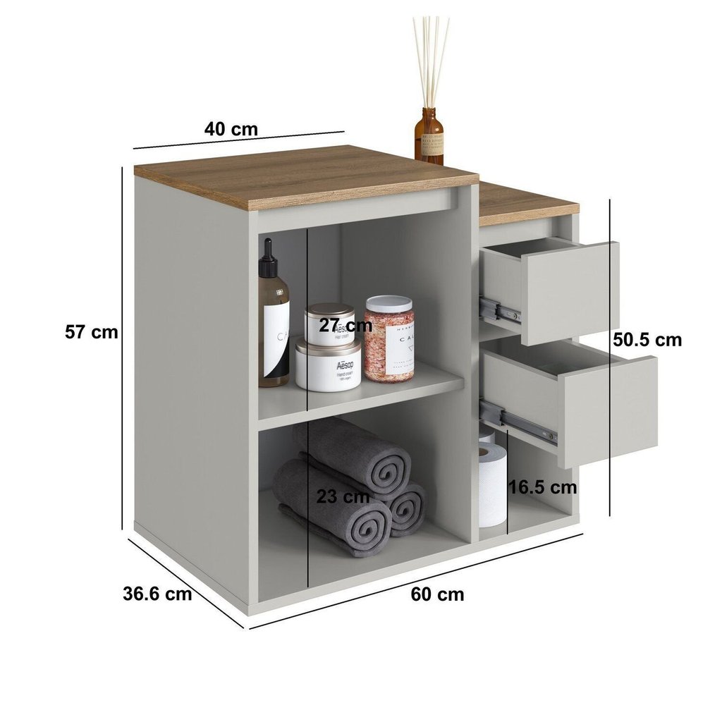 Balcão Gabinete de Banheiro Suspenso 60 Bahamas com 1 Porta e 2 Gavetas Arenas