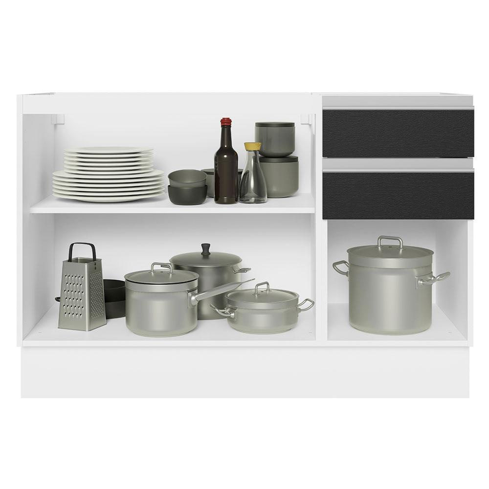 Balcão Gabinete de Pia Cozinha 100% MDF 120 cm 3 Portas 2 Gavetas Branco/Preto Acordes Madesa