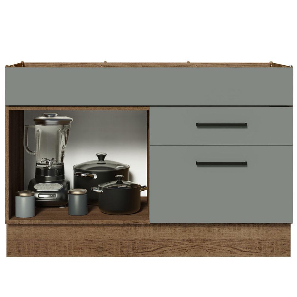 Balcão Gabinete de Pia Cozinha 120 x 60 cm 1 Porta 2 Gavetas Rustic/Cinza (Sem Tampo) Agata Madesa
