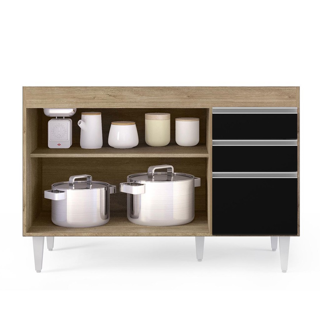Balcão Gabinete Para Pia 120cm sem Tampo 3 Portas 2 Gavetas Michigan Castanho/Preto - Lumil
