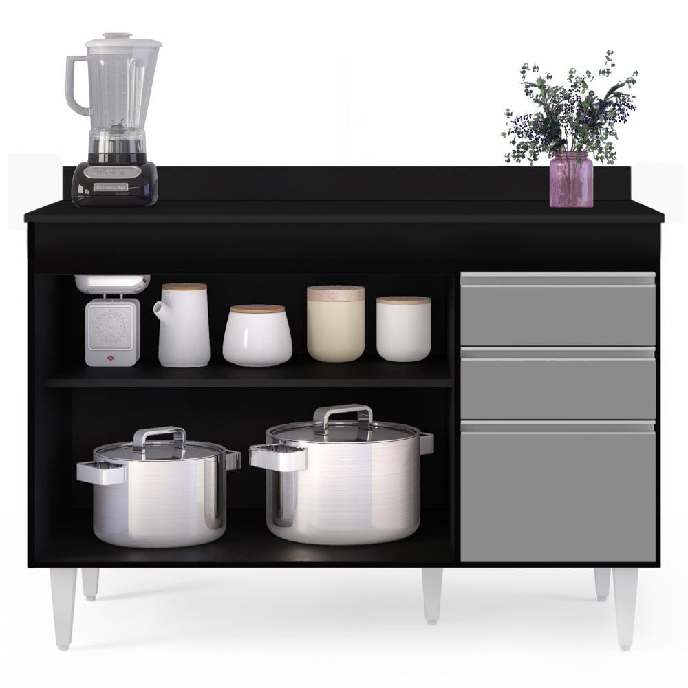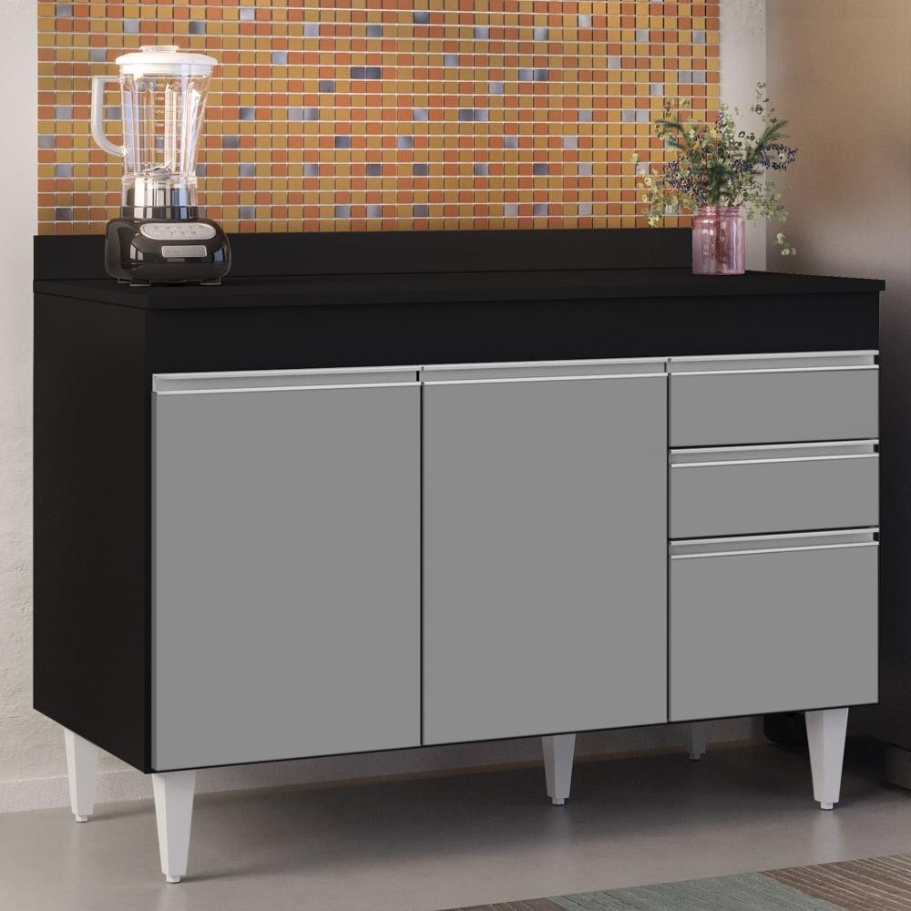 Balcão Gabinete para pia com Tampo 120cm Michigan Pto/Cinza - Lumil
