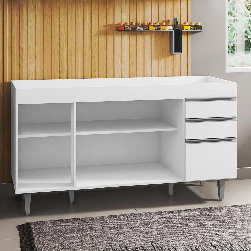 Balcão Gabinete para pia sem Tampo 150cm Marrocos Branco - Lumil