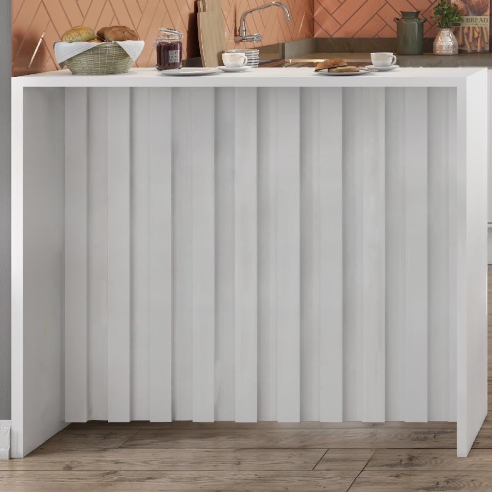Balcão Ilha Ripado Milla Branco MDF 120cm Carraro