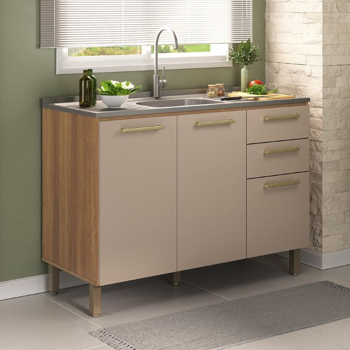 Balcão Luciane 3 Portas e 2 Gavetas - Largura 1,20m (Sem Tampo)
