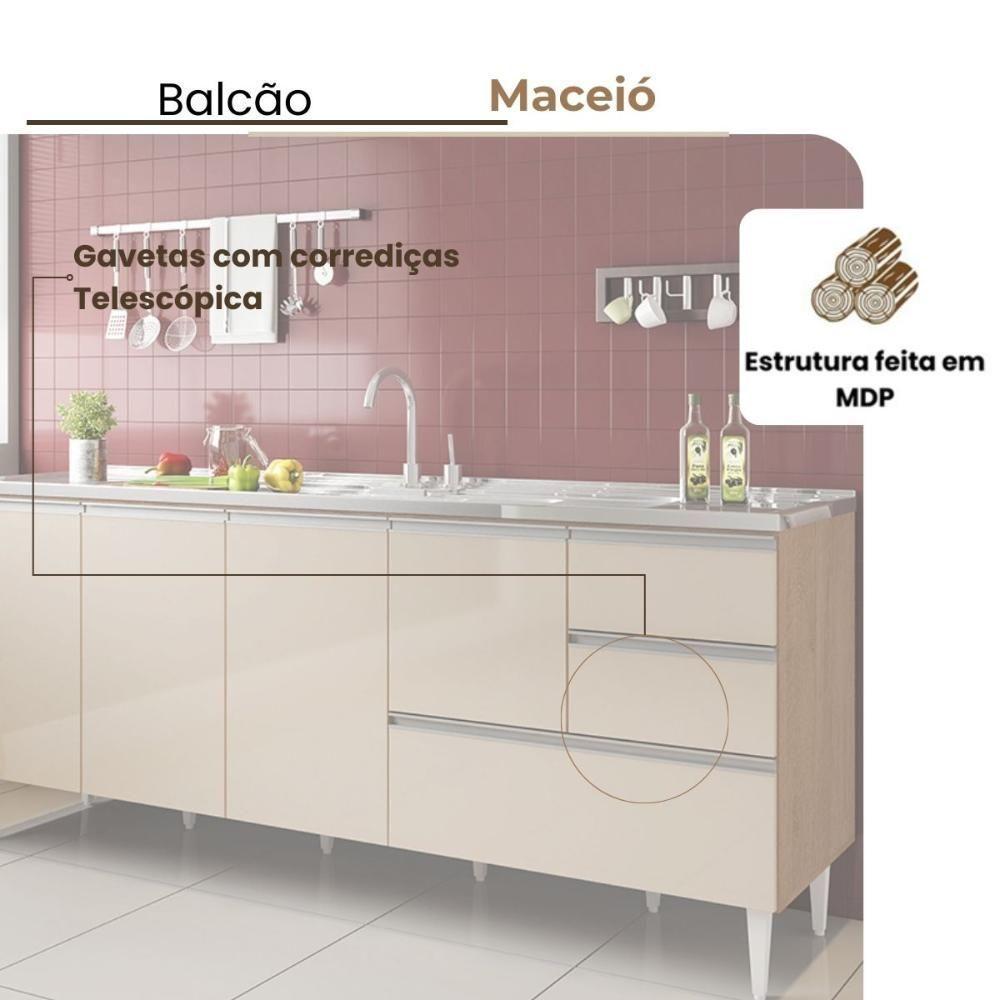Balcão Maceió Para Pia 1,80 4 Portas Com Gavetão Amêndoa Off