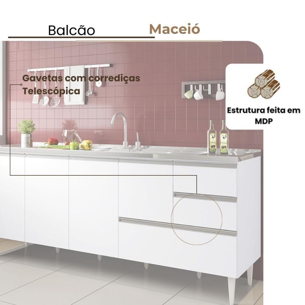 Balcão Maceió Para Pia 2,00 Mt 4 Portas Com Gavetão Branco