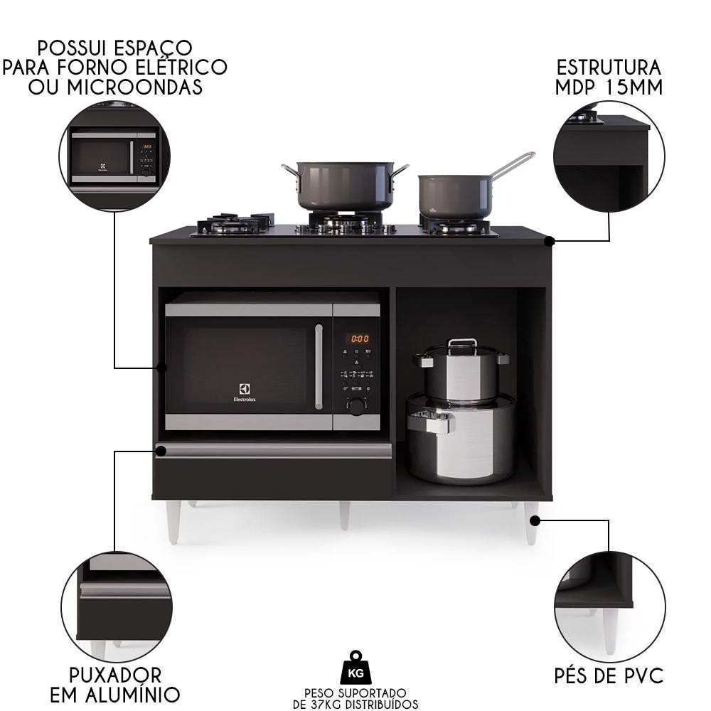 Balcão Multiuso para Cooktop 4 Bocas Georgia Preto - Lumil Móveis