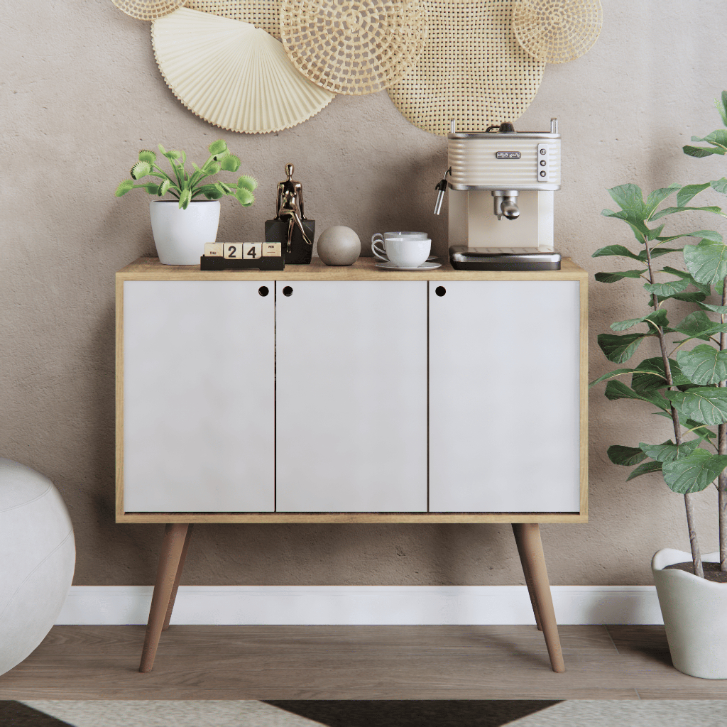 Nota Fiscal - Pronta Entrega - Envio Imediato - Mais Vendido - Enviamos para Todo o Brasil< Buffet Compacto e Funcional Este buffet é ideal para otimizar espaços pequenos, como cantinhos de café e balcões. Com design moderno e pés retos, combina organização eficiente com um toque elegante. Feito com materiais de alta qualidade e disponível em várias cores, é versátil e se adapta a diferentes ambientes, como sala de jantar e estar. Adicione charme e estilo à sua casa com este móvel prático e sofisticado. Medidas: - Altura Total: 77,5 cm - Altura dos pés: 30cm - Largura: 90,5 cm - Profundidade: 33 cm Características - 3 Portas - 2 Prateleiras Internas - Acabamento em Semi Brilho - Puxadores Vazados - Suporta aproximadamente 25kg distribuídos