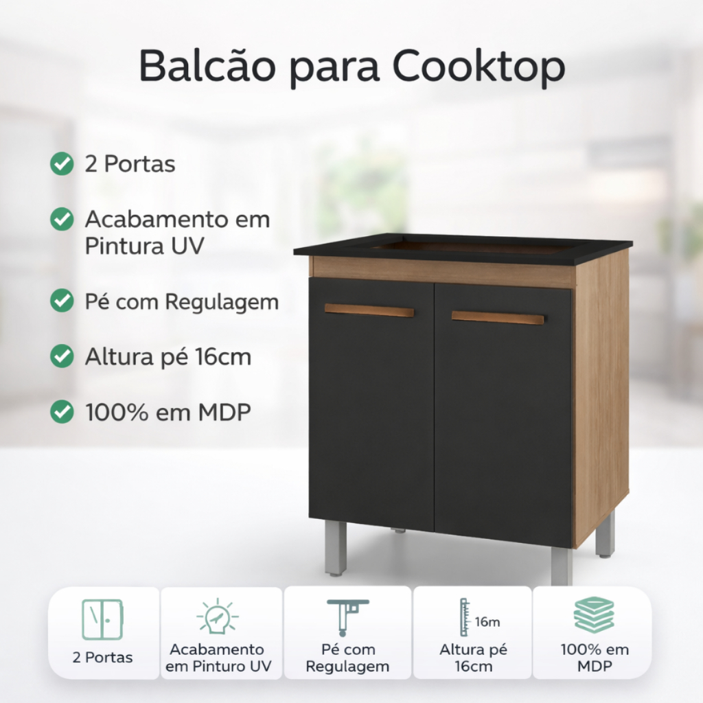 Balcão para Cooktop 5 Bocas Pirulito Jade Armário para Cooktop 5 bocas - Moblis
