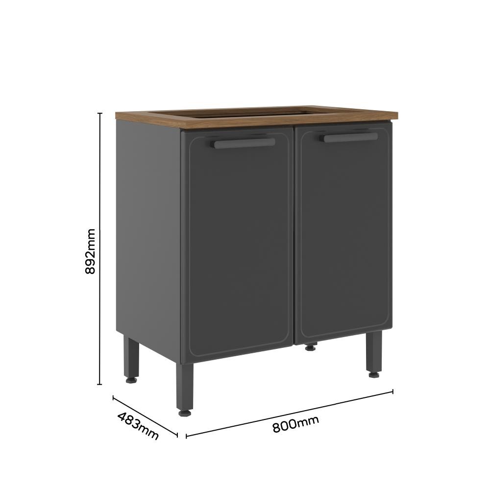 Balcão para Cooktop Bertolini Estilo em Aço com 2 Portas Cor Grafite