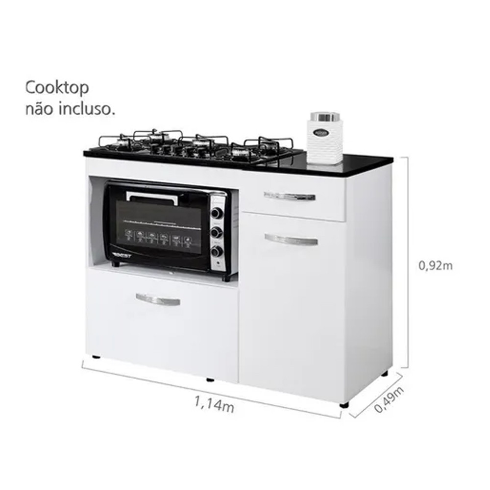 Balcao Para Cooktop Violeta 5 Bocas Branco - Kaiki Moveis