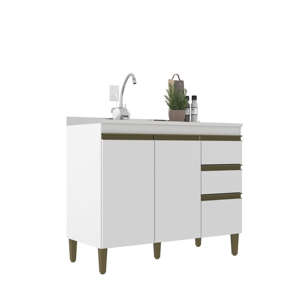 Balcão para Cozinha 3 Gavetas 2 Portas 120cm Branco