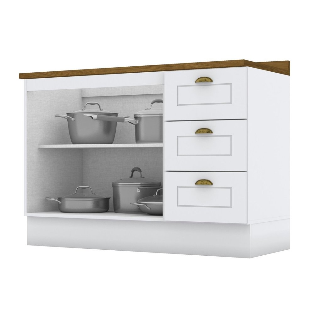 Balcão para Cozinha 3 Gavetas 2 Portas com Tampo Emily Branco HP/Nature