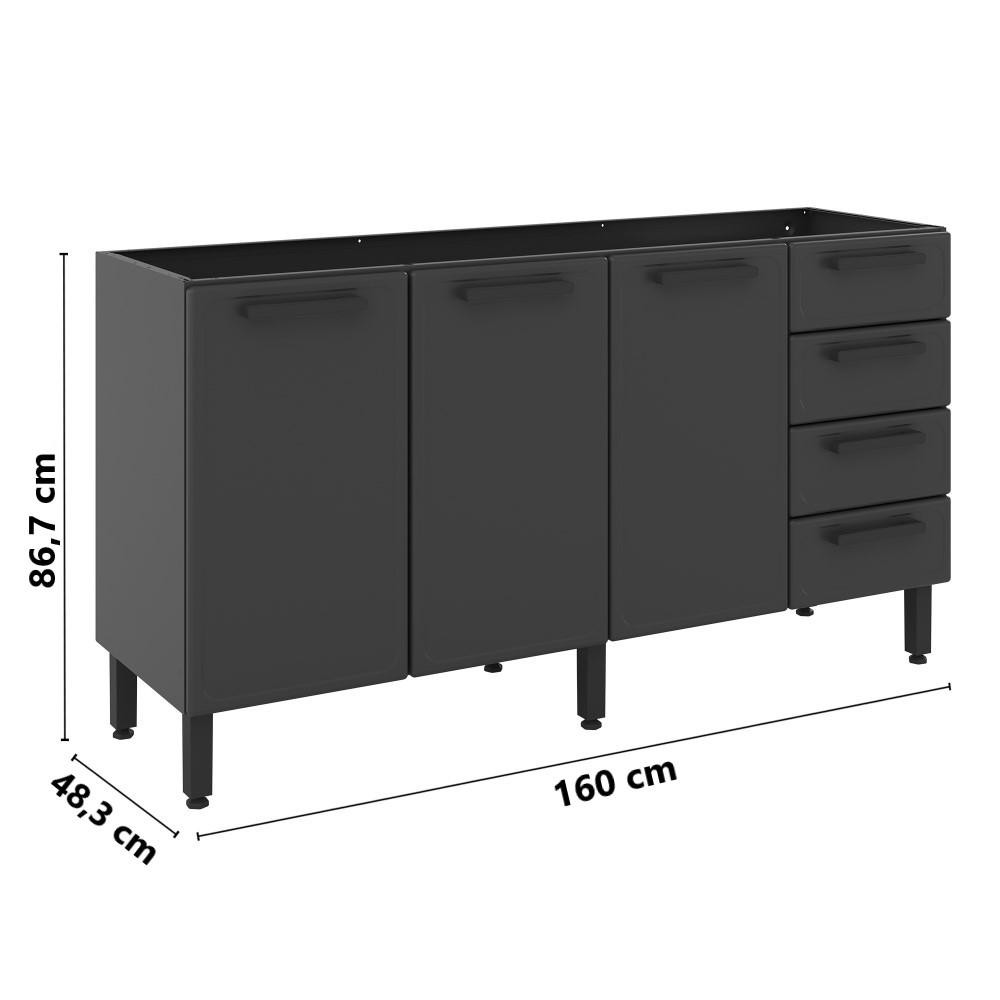 Balcão para Cozinha Bertolini Estilo em Aço com 3 Portas e 4 Gavetas Cor Grafite