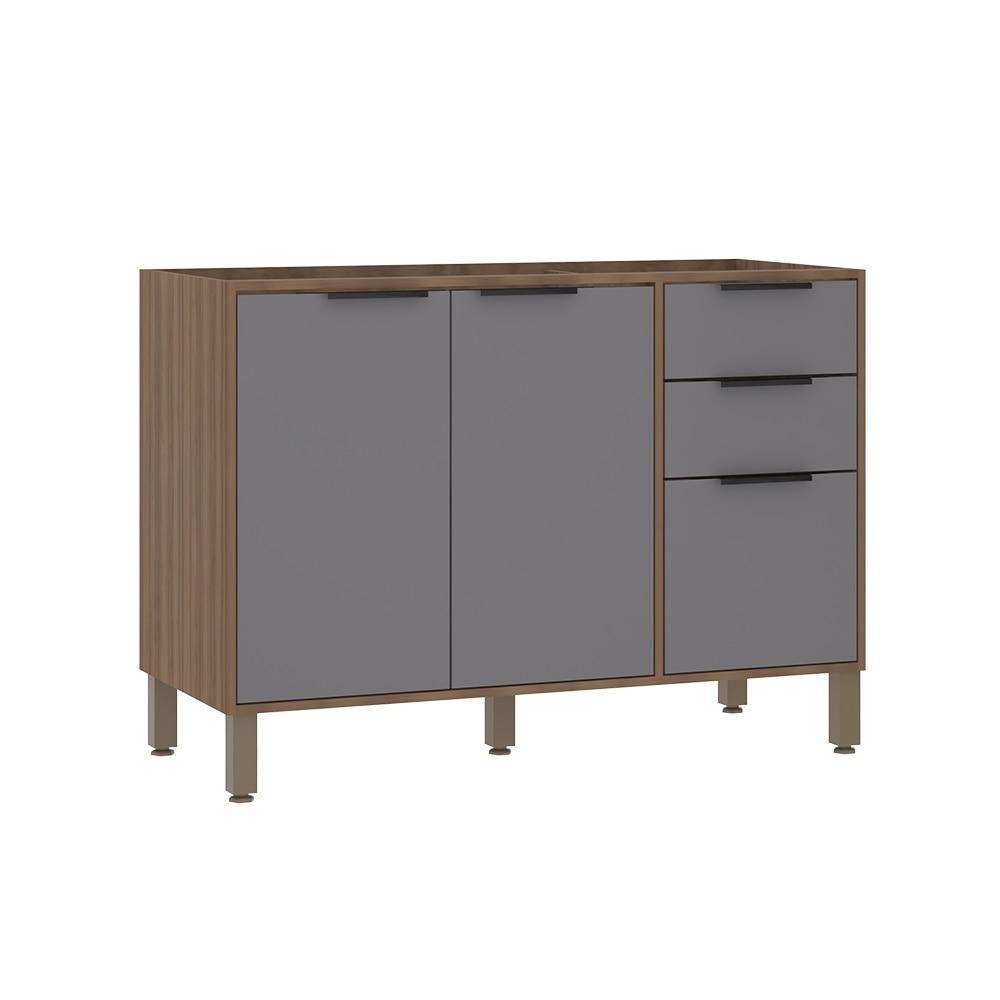 Balcão para Pia Paris 120cm 2 Portas 3 G Cinza