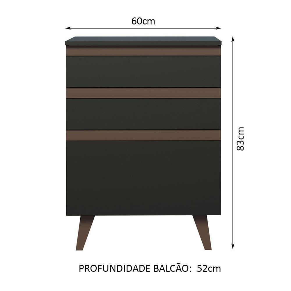 Balcão Reims 3 Gavetas Preto Madesa