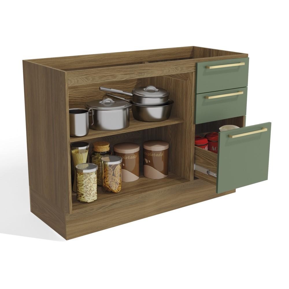 Balcão Sem Tampo Para Pia 120 Cm 2 Portas 3 Gavetas 1 Prateleira Organizador Cozinha Marrom Verde